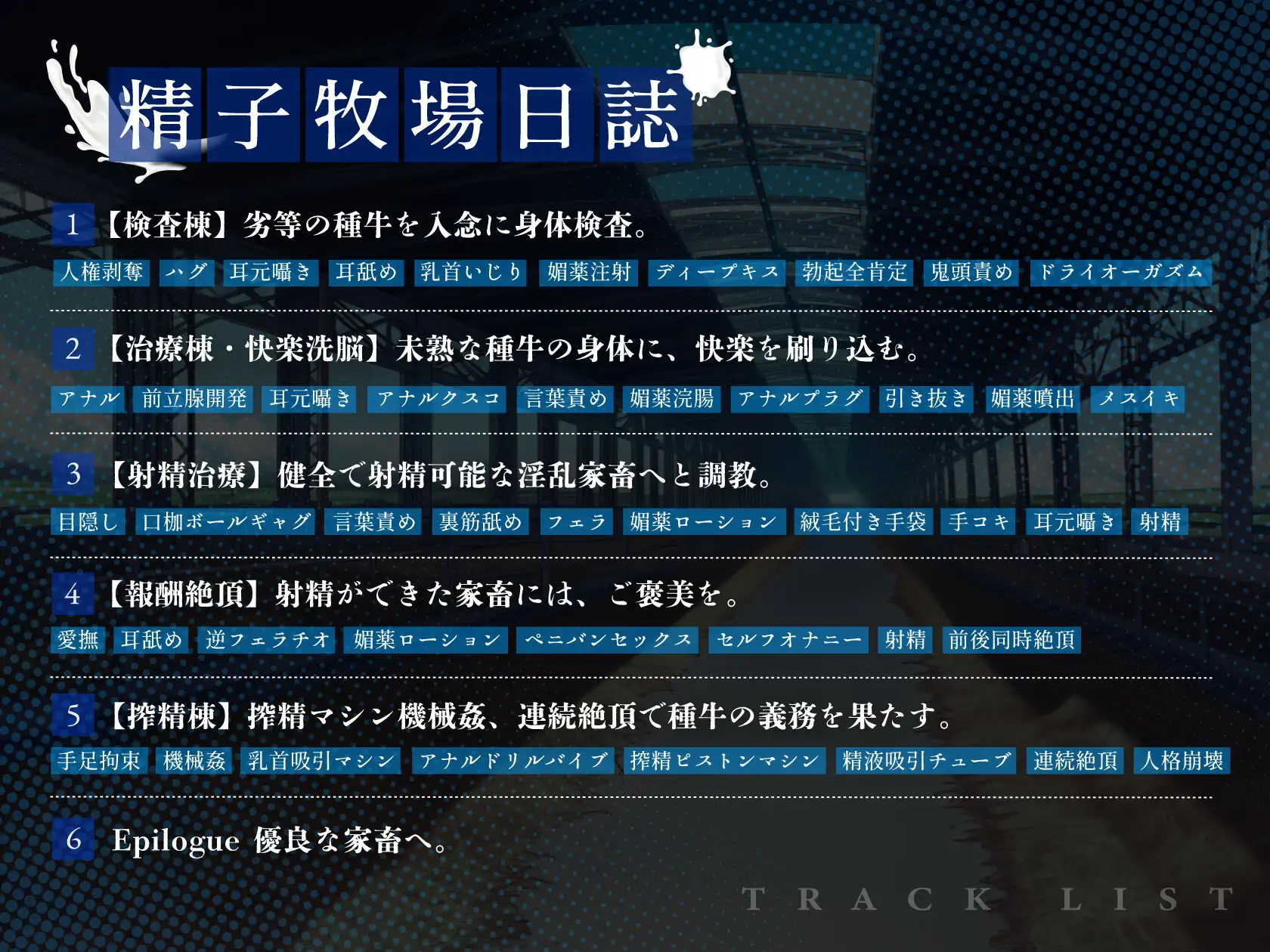 人権剥奪・ハグ・耳元囁き・耳舐め・乳首いじり・媚薬注射・ディープキス・勃起全肯定・鬼頭責め・ドライオーガズム