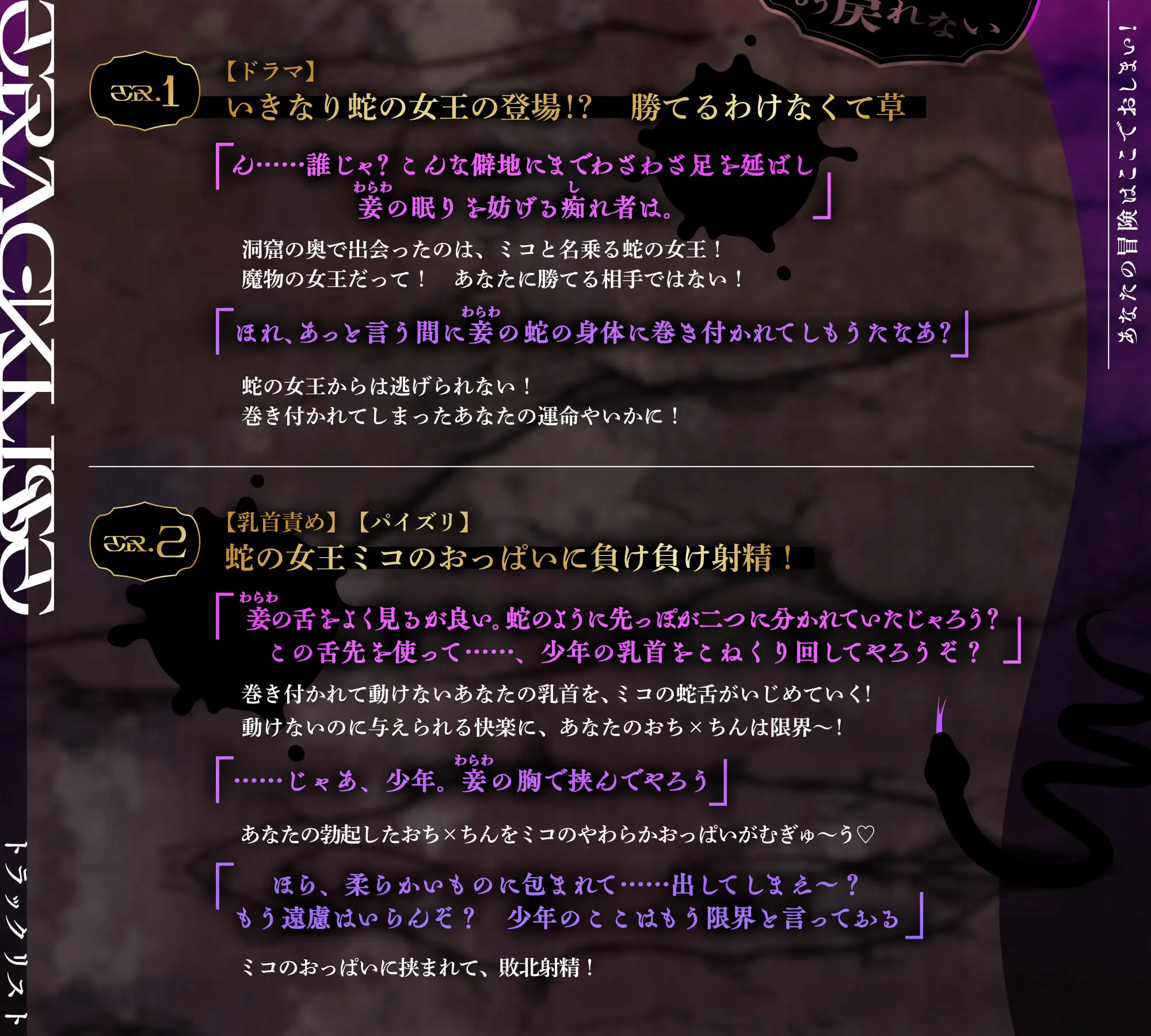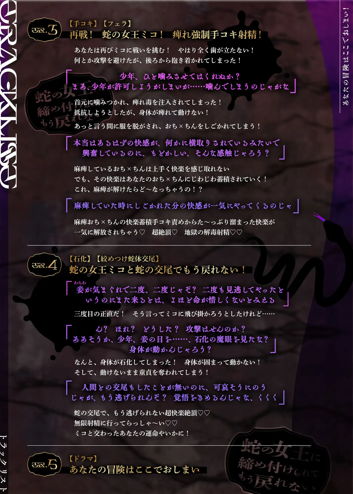 そして、あなたは、蛇の身体で締め付けられながら与えられる快楽に心を溶かされていく……。