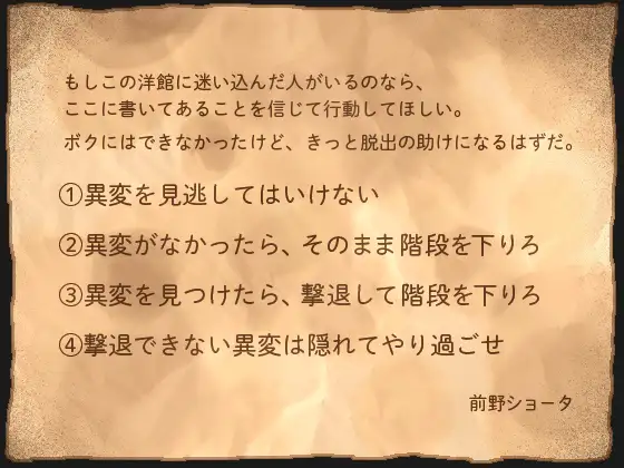 友達を探して洋館に迷い込んでしまった男の子。