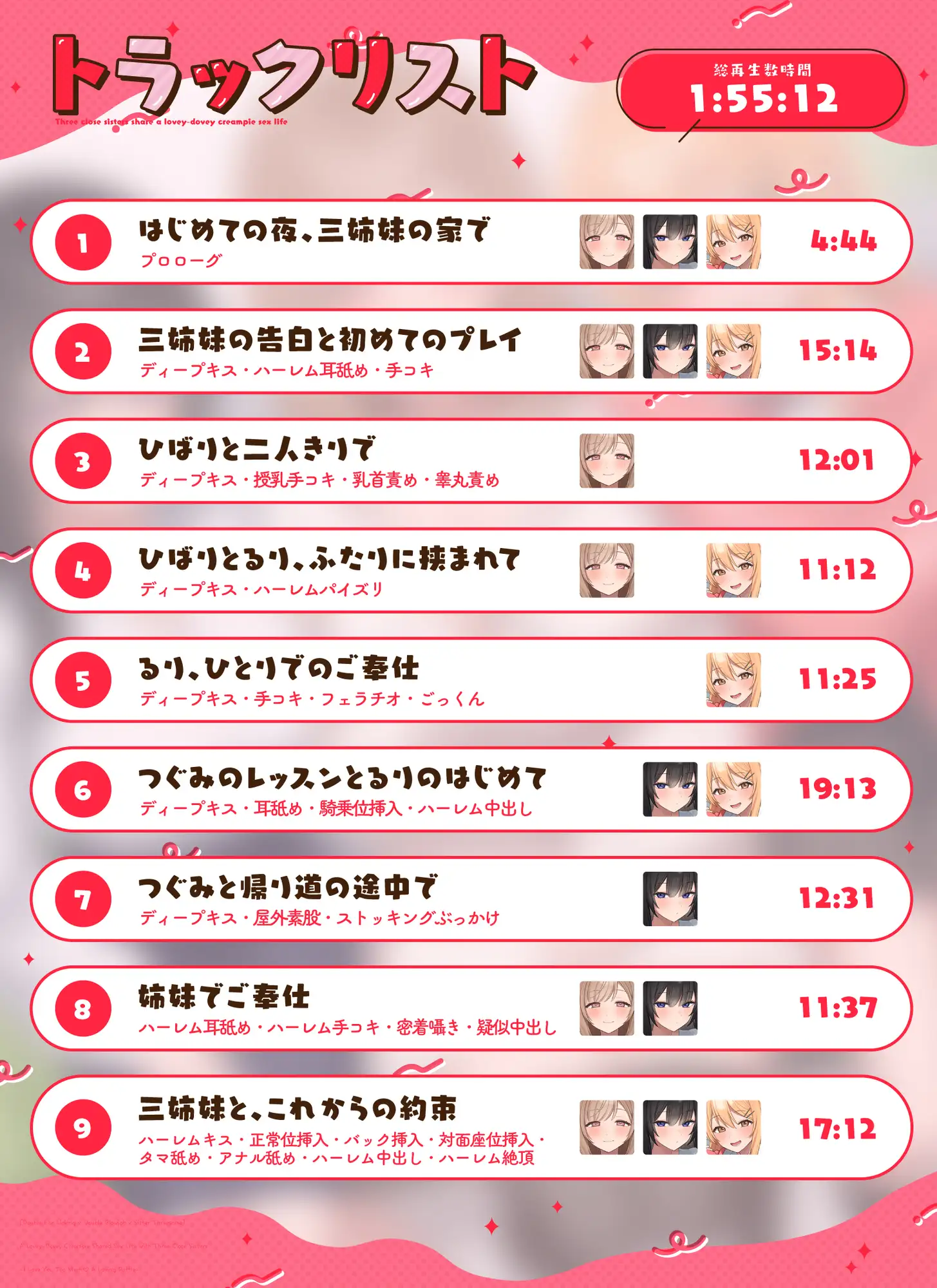 【W耳舐め×Wフェラ×姉妹丼】仲良し三姉妹といちゃラブ中出しシェア性活~すきすき連呼♡らぶらぶ取り合い~
