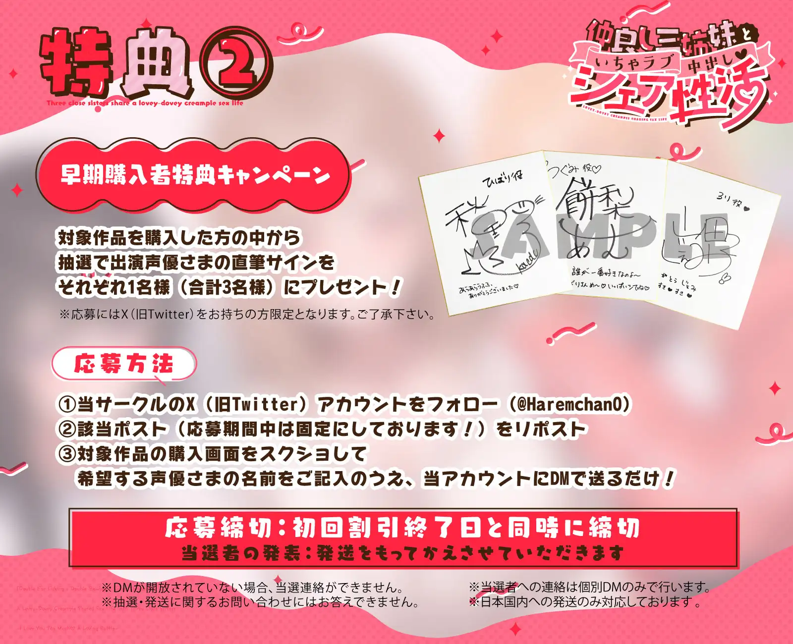 ハーレム耳舐め・ハーレム手コキ・密着囁き・疑似中出し
