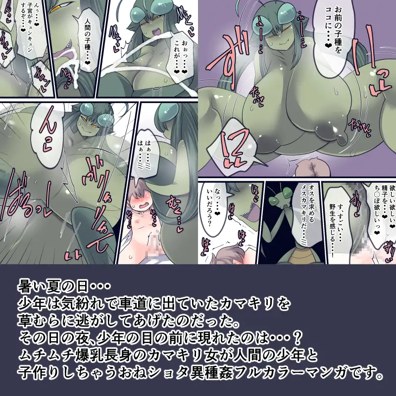 あの時助けていただいたカマキリですが子種頂きます 2025.10.27 Download Now!この作品のダウンロードはコチラ 作品内容 あの時助けていただいたカマキリですが子種頂きます 暑い夏の日・・・少年は車道に出ていたカマキリを 安全な草むらに移して轢かれないようにしてあげた。 その夜、少年の目の前に現れたのは・・・? ムチムチ爆乳長身のカマキリ女が人間の少年と子作りしちゃう 異種姦おねショタフルカラーマンガです。 文字あり文字なしそれぞれ20ページ おまけのキャラ紹介が3ページ 総ページ数43ページです Download Now!この作品のダウンロードはコチラ