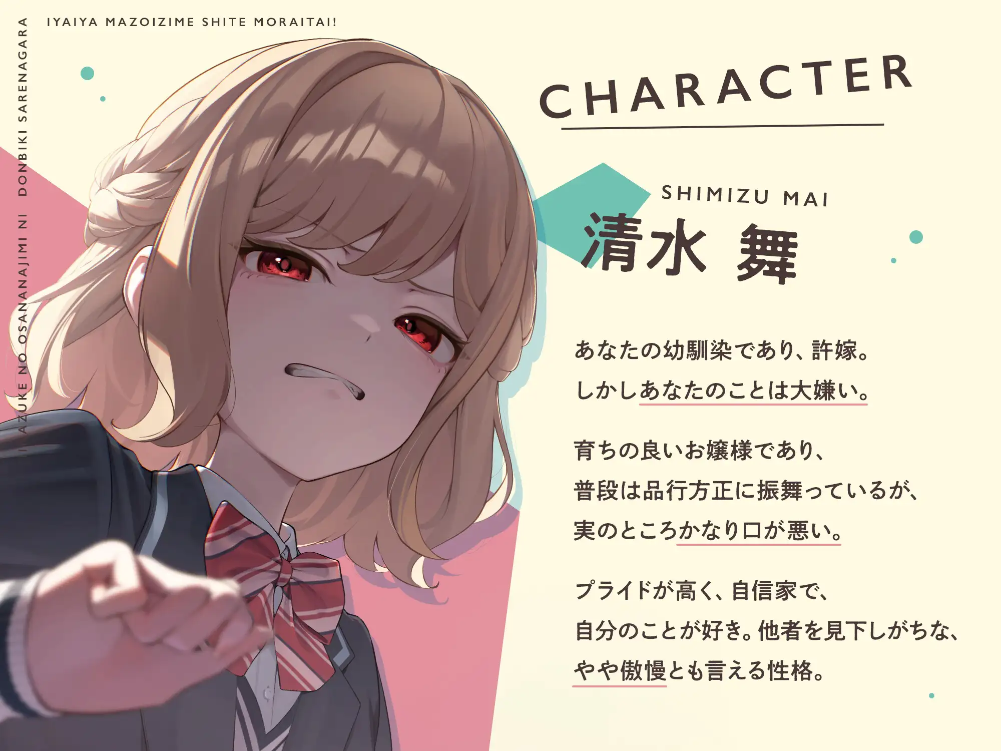 あなたと同じクラスになった舞は、放課後にあなたを呼び出し、許嫁の件をみだりに言いふらさないよう釘を刺してきます。