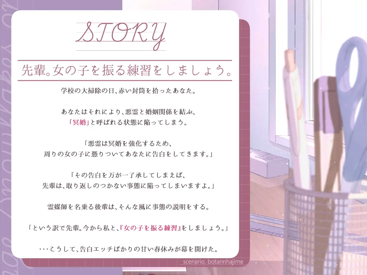 (告白 / 耳舐め / 亀頭責め / 女の子を振る練習 / 下着姿で密着(先輩は裸) )