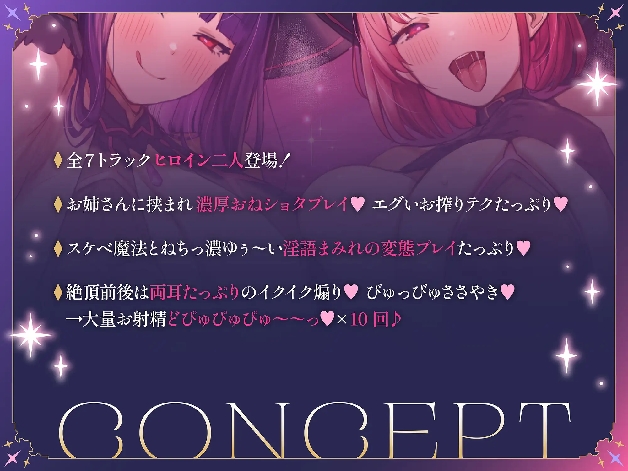 【全トラックヒロイン二人♪】あなたを魔法で童貞ショタにしておちんぽヌキヌキしてくる淫乱魔法使い姉妹【高速無声ささやき/オホ声】