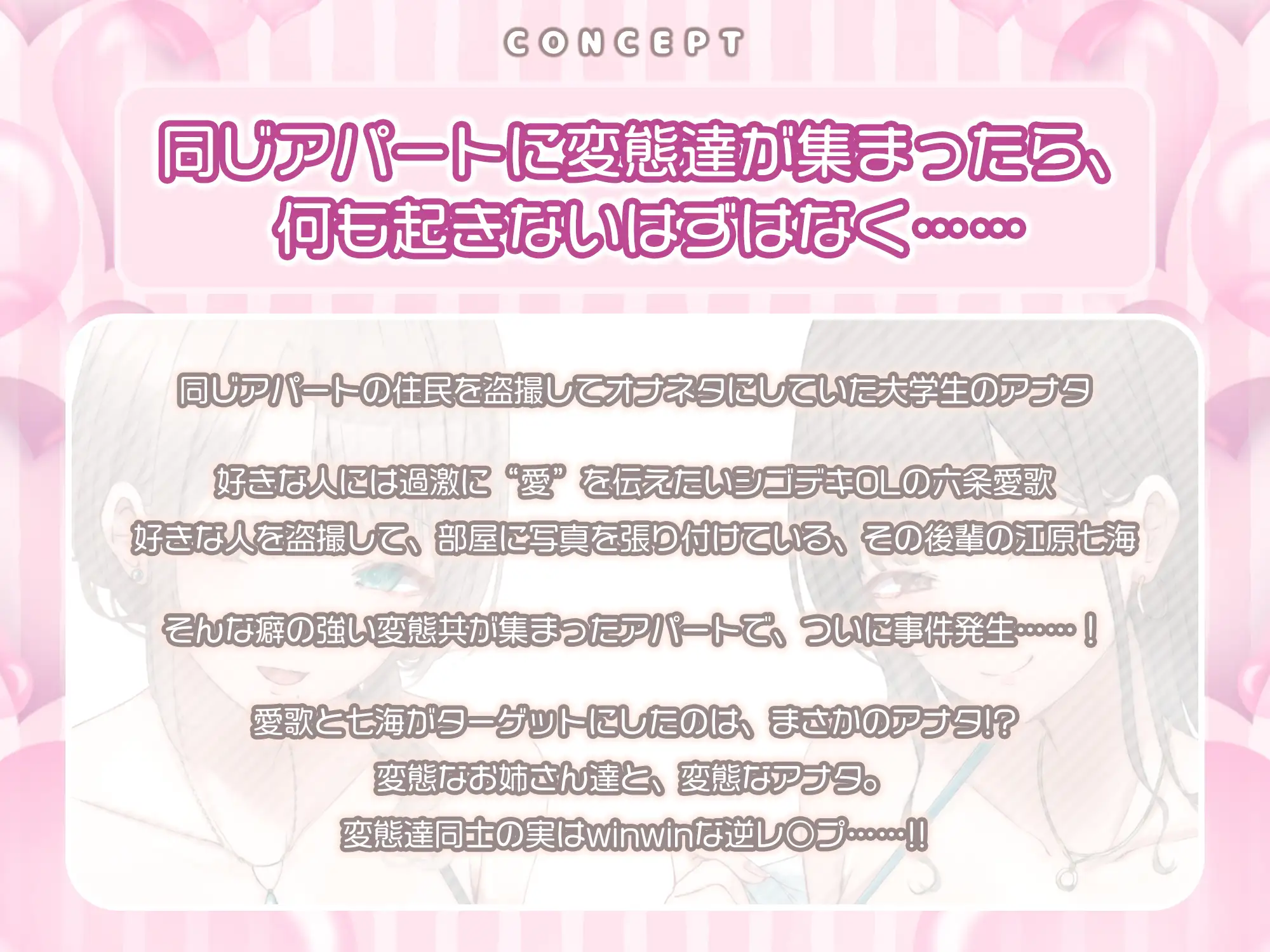 同じアパートに住む変態たち、愛歌と七海に監禁されて愛を教え込まれる音声を133分たっぷり収録♪