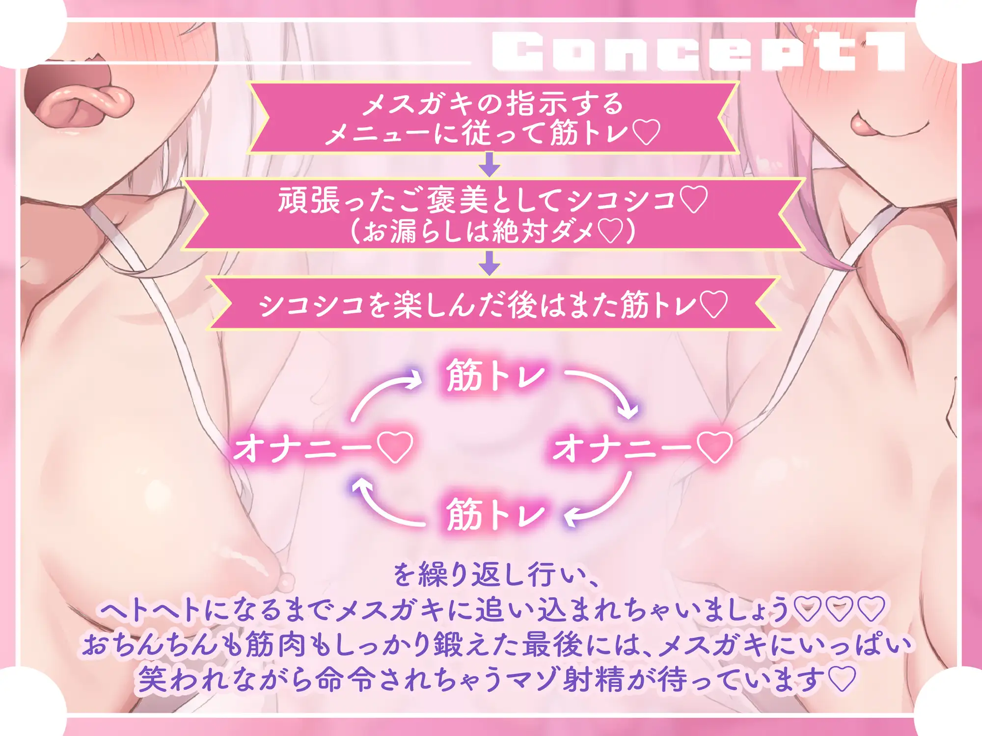 →筋トレを頑張ったご褒美にシコシコ寸止め♡ メ○ガキちゃん達がいっぱい耳元であなたのオナニーを応援♡