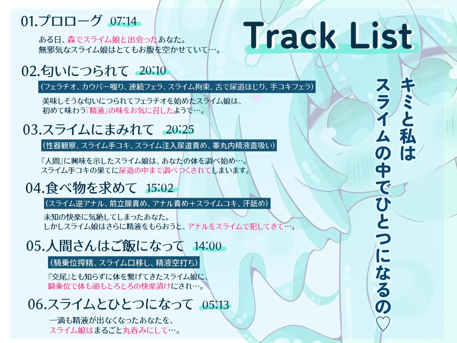 あなたはそんなスライム娘に未知の快楽を次々と植え付けられてしまうのでした。