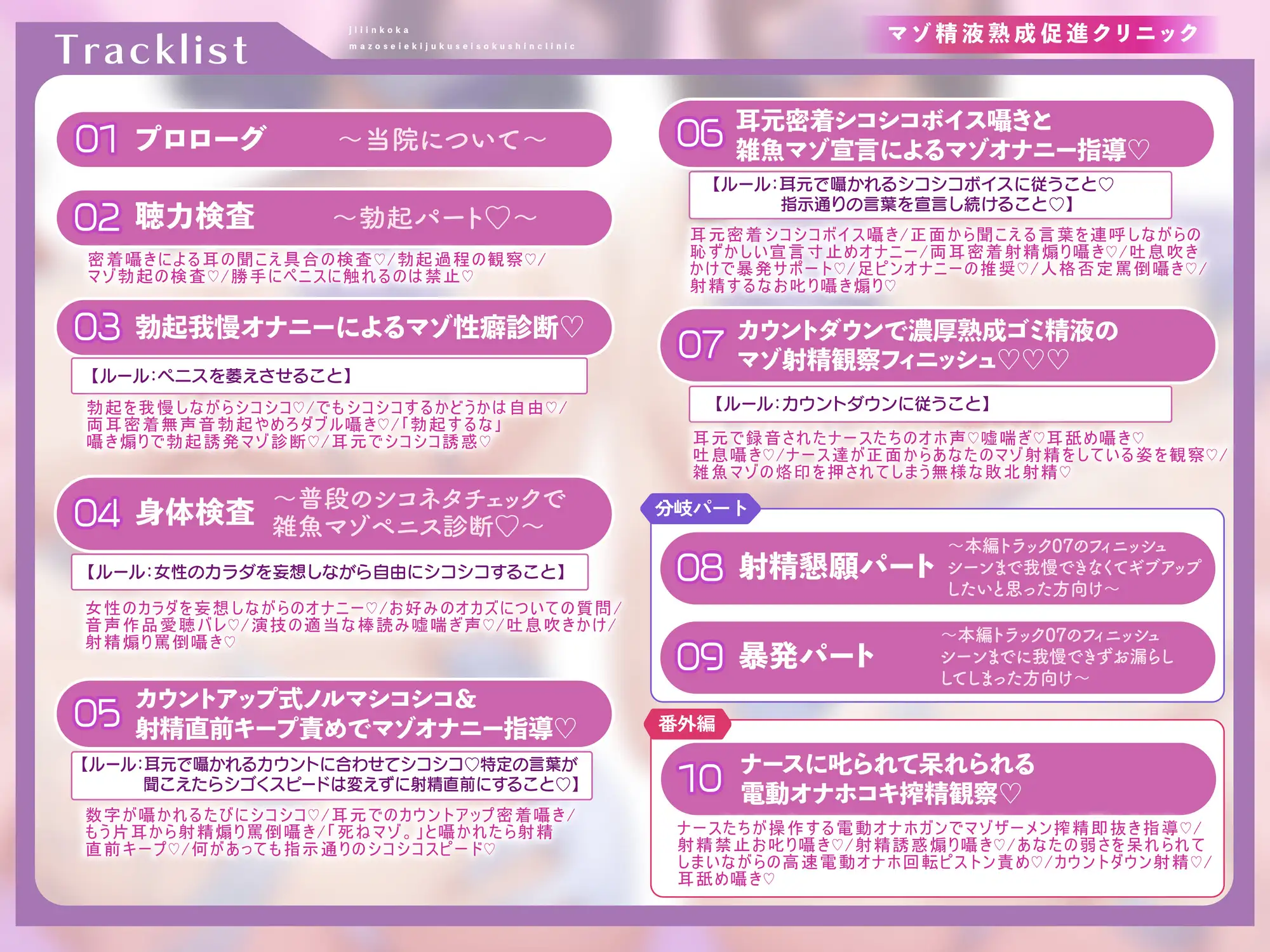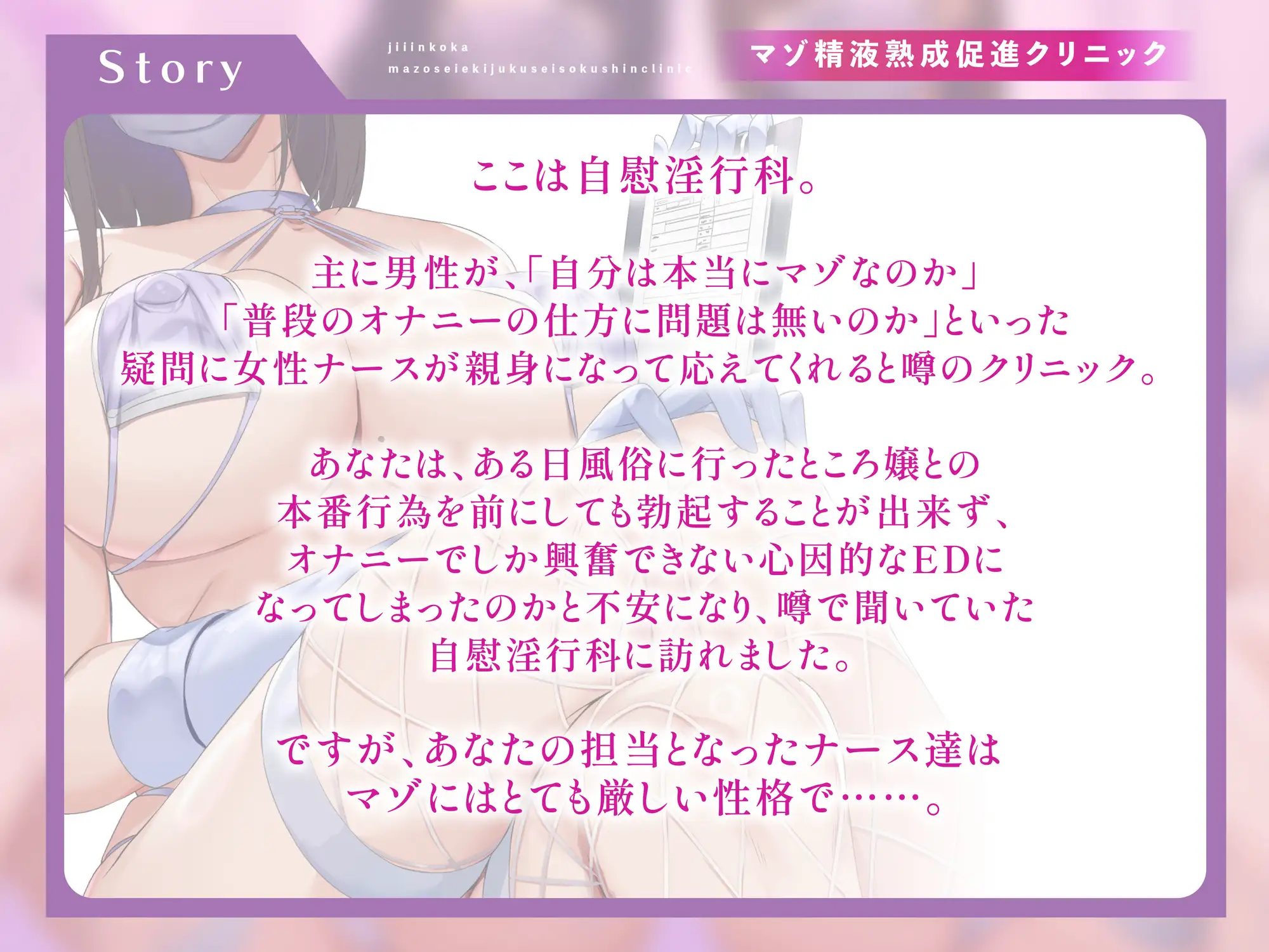 マゾ精液熟成促進クリニック 自慰淫行科 ~ドスケベ事務的ナース達が教える正しいマゾオナニーのやり方~【シコシコボイス・嘘喘ぎ・勃起我慢オナニー・宣言オナニー】