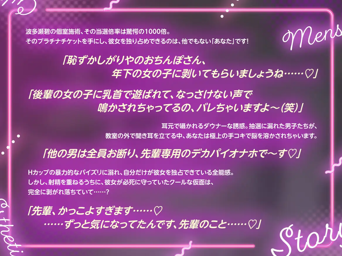 抽選に漏れた男子たちが教室の外で聞き耳を立てる中、あなたは極上の手コキで脳を溶かされちゃいます♡
