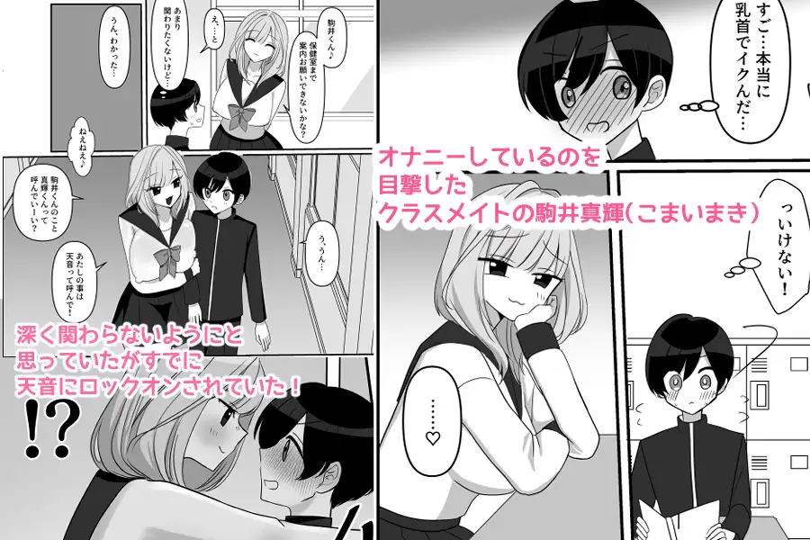 そう胸の中で思う駒井真輝(こまいまき)だったが、授業中に乳首オナニーを始めた天音を目撃してしまったのをきっかけにどんどん天音のペースに巻き込まれ、乳首開発をされることに…!?